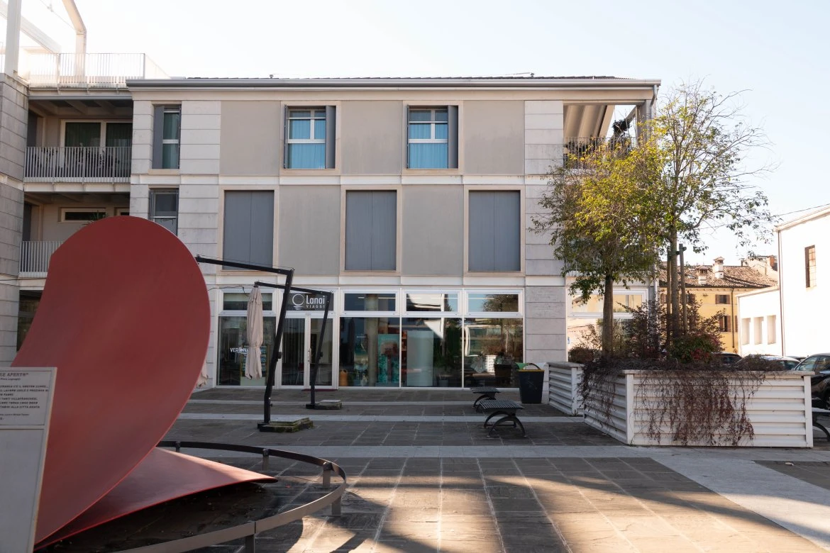Il progetto ha riguardato il completamento di un’unità commerciale lasciata al grezzo, situata nel centro storico di Villafranca di Verona, trasformata in uno spazio contemporaneo capace di dialogare con il contesto attraverso trasparenza, luce e misura. L’architettura è definita da un volume completamente vetrato sugli affacci principali, concepito per stabilire una relazione diretta tra spazio interno e città. La luce naturale diventa elemento progettuale centrale, capace di attraversare l’intero ambiente e di amplificarne la percezione spaziale, trasformando l’esperienza lavorativa in un luogo aperto, accogliente e rappresentativo