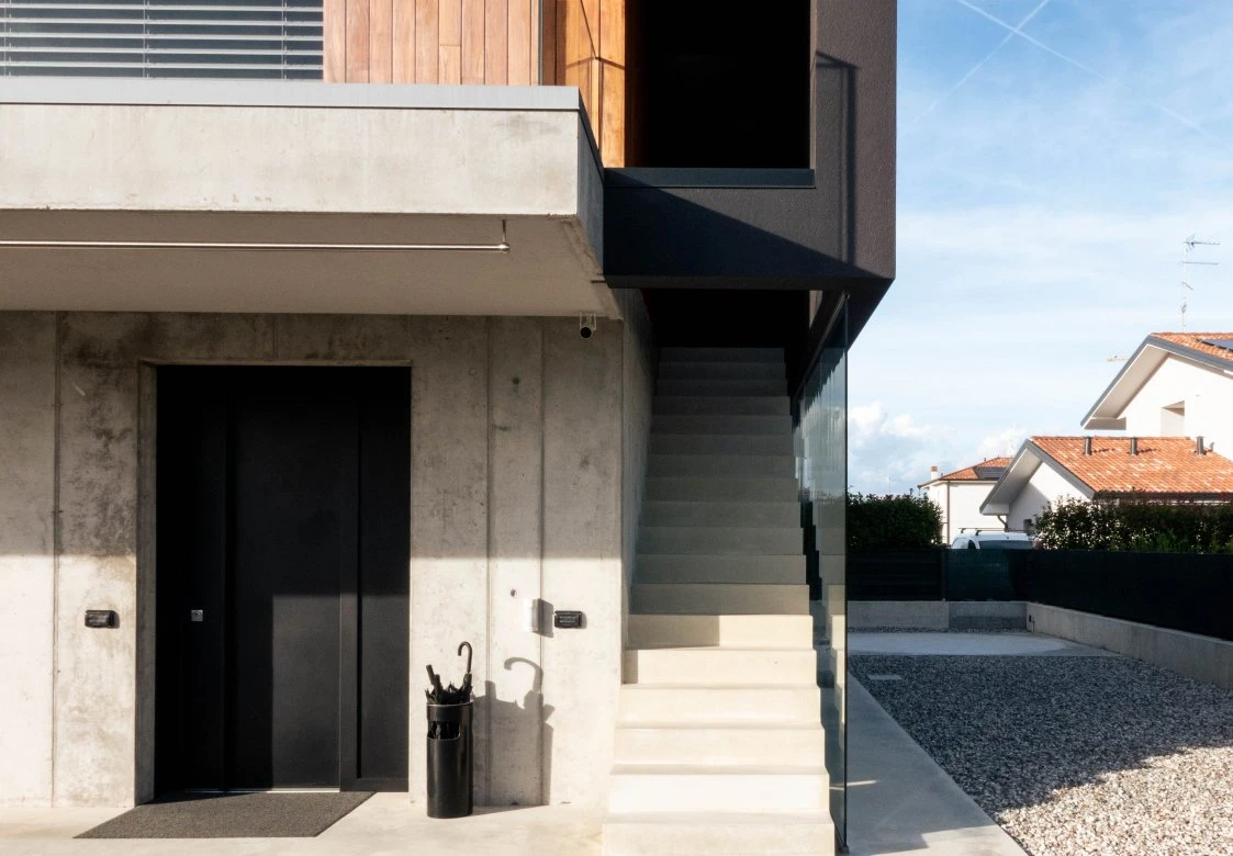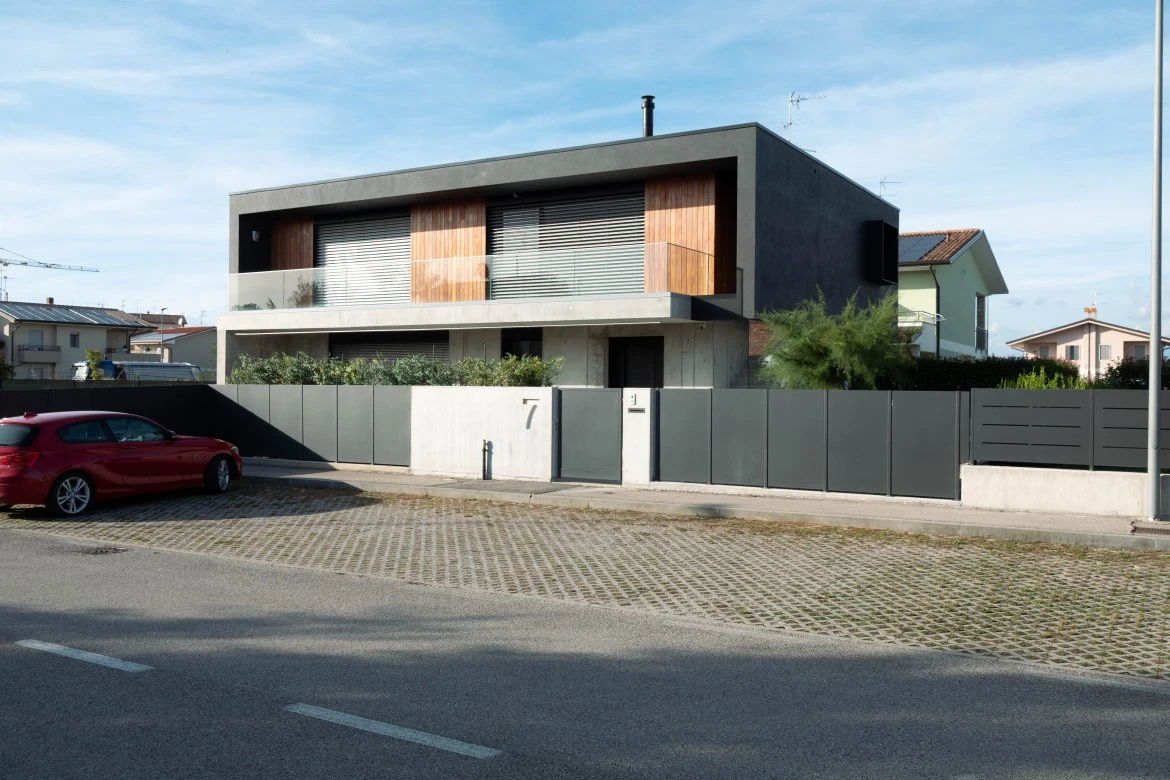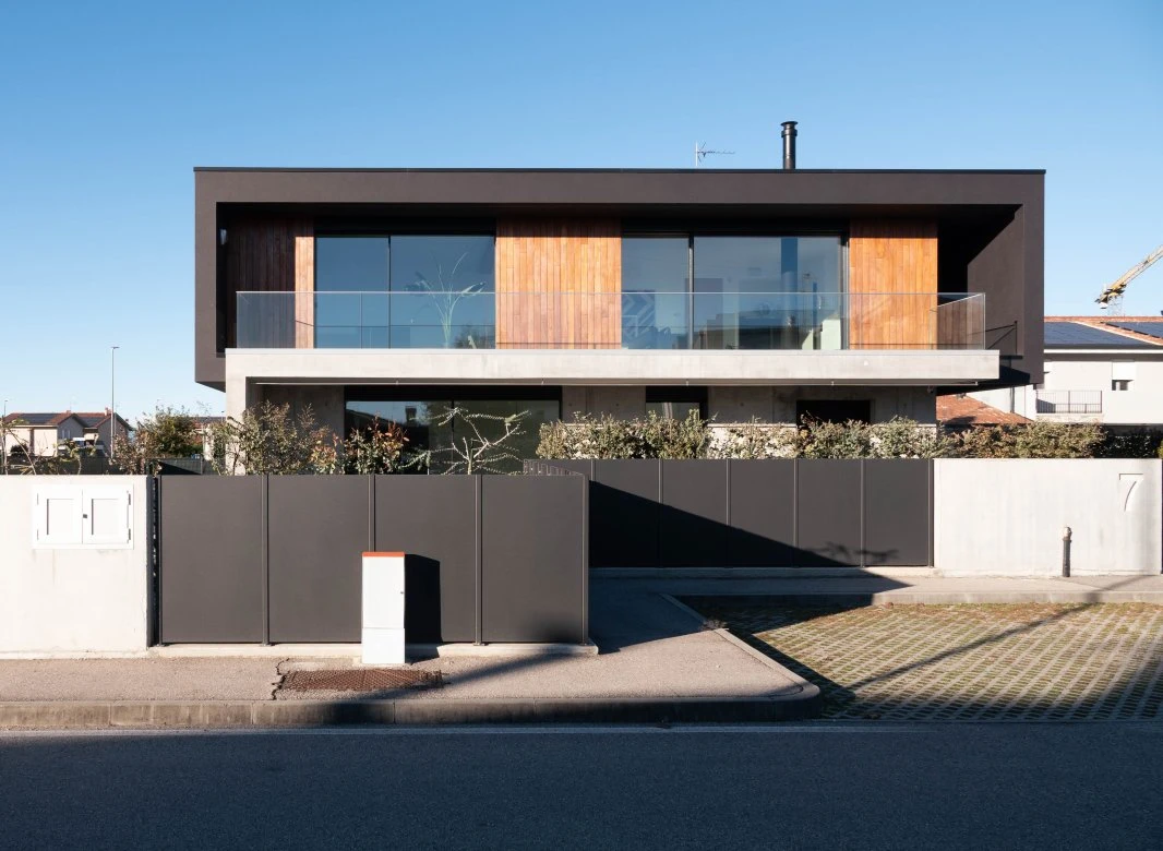 L’abitazione sorge su un lotto inedificato all’interno del tessuto residenziale di completamento nella zona nord del centro abitato di Povegliano Veronese. In un ambito caratterizzato da edificazioni recenti, l’intervento si propone come un’architettura riconoscibile, capace di inserirsi con equilibrio nel tessuto esistente senza rinunciare a una propria identità formale. L’obiettivo è quello di costruire non solo un’abitazione, ma un luogo in cui spazio, materia e luce concorrono a generare benessere e a migliorare la qualità dell’abitare quotidiano
